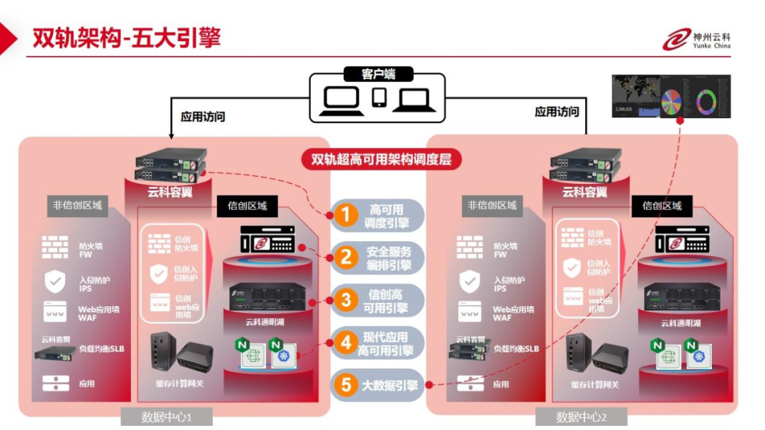 数据中心架构在自主创新的过程中分解为现有架构的非信创区和信创区的两个业务区域,在每个数据中心分为信创区和非信创区后,在两个区域之间的跨区跨域协同方法,MGM美高梅官网顺利获得5大引擎实现多层次的应用可持续性实践。